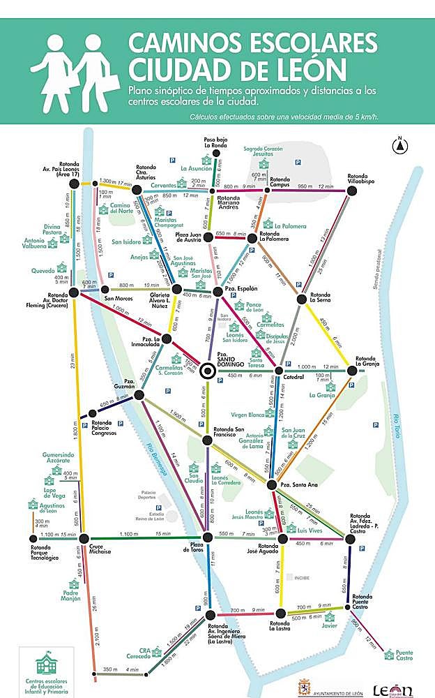 «Una forma didáctica para se vayan concienciando de la importancia que tiene el caminar, los modos de movilidad más sostenibles y hacerlo de forma segura». Así resumió el alcalde de León, José Antonio Diez, el objetivo de la edición de un 'Metro-minuto escolar' que, en forma de plano, recoge los tiempos y distancias aproximados a todos los centros educativos de la ciudad, para animar a hacer esos recorridos a pie.
