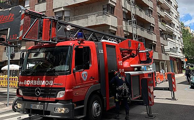 Los Bomberos de León intervienen en la fachada de un edificio que sufría desprendimientos y cuyos restos caían a una terraza
