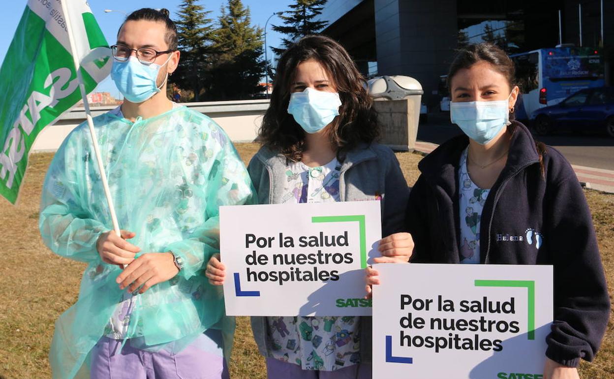 Satse organiza una concentración con cerca de 30 enfermeros frente al Hospital de León | Critican un aumento de «la carga asistencial» que tiene como consecuencia «un déficit estructural»