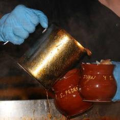 Al precio de tres euros, el leonés pudo disfrutar no solo del alimento, sino también del cuenco de barro de Jiménez de Jamuz, la cucharita de madera y el condimento.
