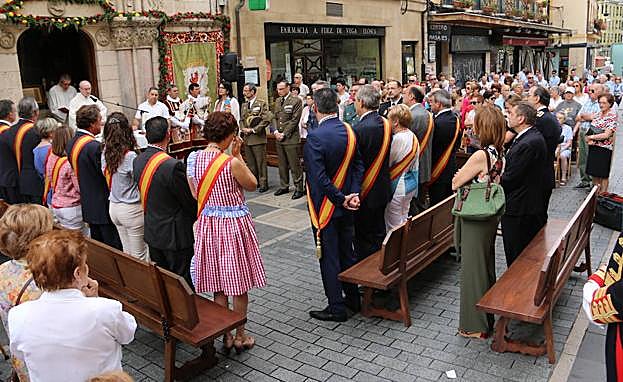 La capilla del Cristo de la Victoria ha recibido, como lleva haciendo más de 70 años, a la corporación municipal y a decenas de fieles que no quisieron perderse el acto más religioso de las Fiestas de San Juan y San Pedro.