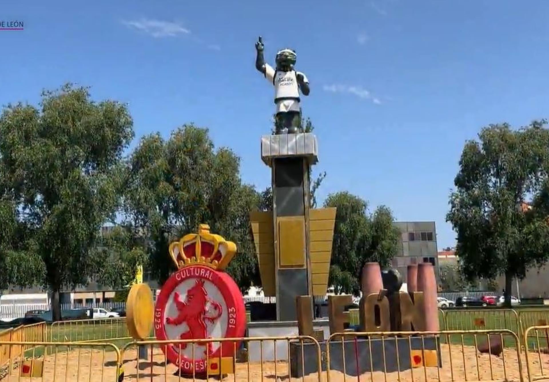 La hoguera de este año tiene un hilo conductor que no podía ser otro que el deporte. En el año del ascenso de la Cultural y Deportiva leonesa a Segunda División, Guzmán, vestido con los colores del equipo local y el '1' a la espalda, marca el camino que ya indicó el 24 de mayo, siendo el epicentro de la fiesta de una ciudad volcada con su equipo.