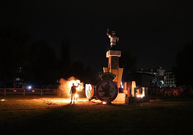 Así, ardía un león gigante con la camiseta de la Cultu que emulaba a Guzmán, el escudo del equipo blanco, una rana de ojos saltones, unos bolos leoneses y un podio de medallas.
