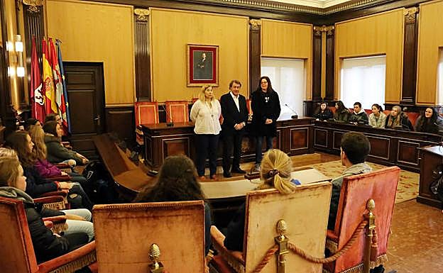 El concejal de Empleo, Promoción Económica y Educación, Javier García-Prieto, ha recibido en el Salón de Plenos del Consistorio de San Marcelo a un grupo de 17 alumnos americanos, procedentes del East Aurora School, de Búfalo. Estos alumnos forman del programa de intercambio con el IES Padre Isla de León, programa de inmersión lingüística y cultural para alumnos de 4º de la ESO. Es instituto americano es un centro públicos con alumnos de 14 a 18 años