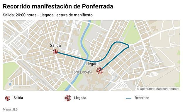 Ponferrada: Salida desde la Plaza Lazurtegui, Avenida de La Puebla, Avenida General Vives, Plaza de la Carrasca, calle Ancha y Plaza del Ayuntamiento.