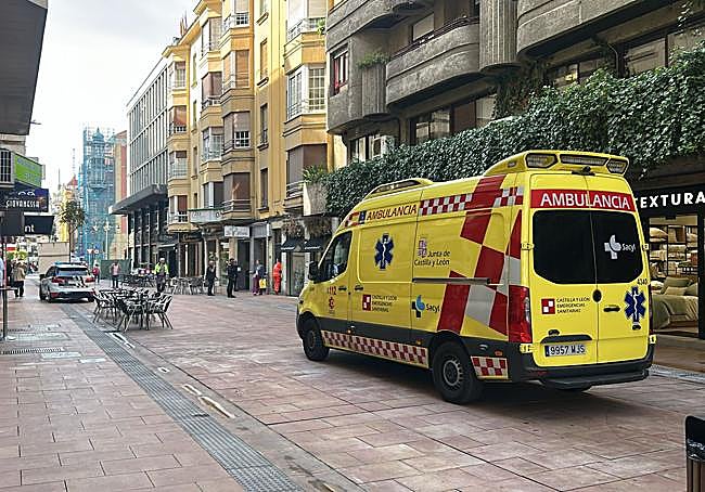 La calle Alfonso V fue el escenario de un amplio dispositivo al que se dirigió un camión-escala de Bomberos de León, una patrulla de agentes y, más tarde, una ambulancia de Sacyl.