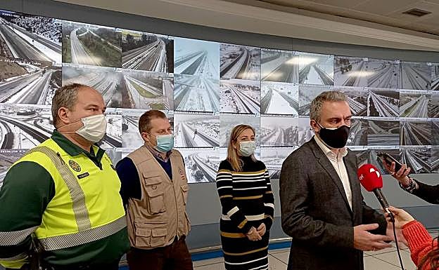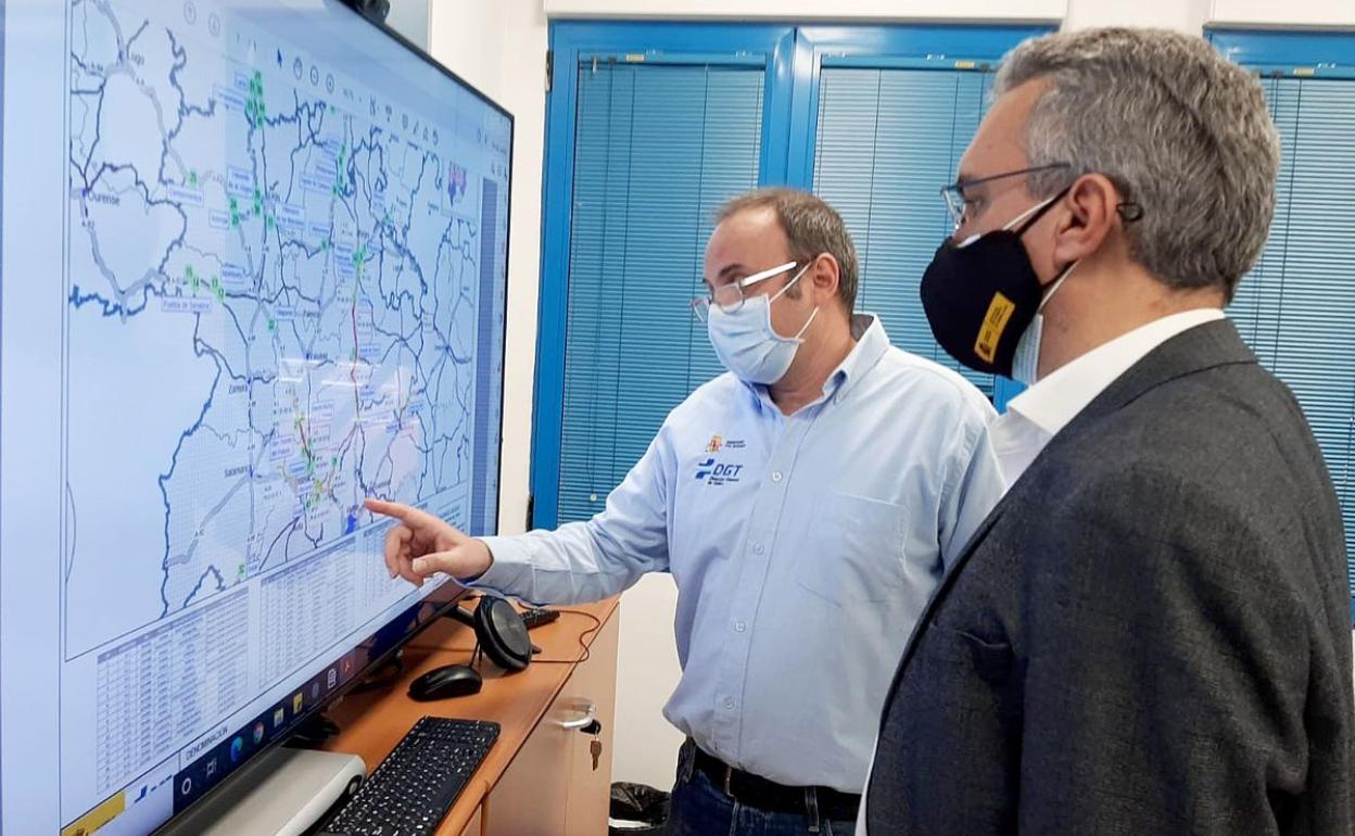 El delegado del Gobierno en Castilla y León, Javier Izquierdo, sigue, desde el Centro de Gestión de Tráfico que la DGT tiene en Valladolid, la evolución de los efectos que la borrasca Filomena está dejando en Castilla y León.