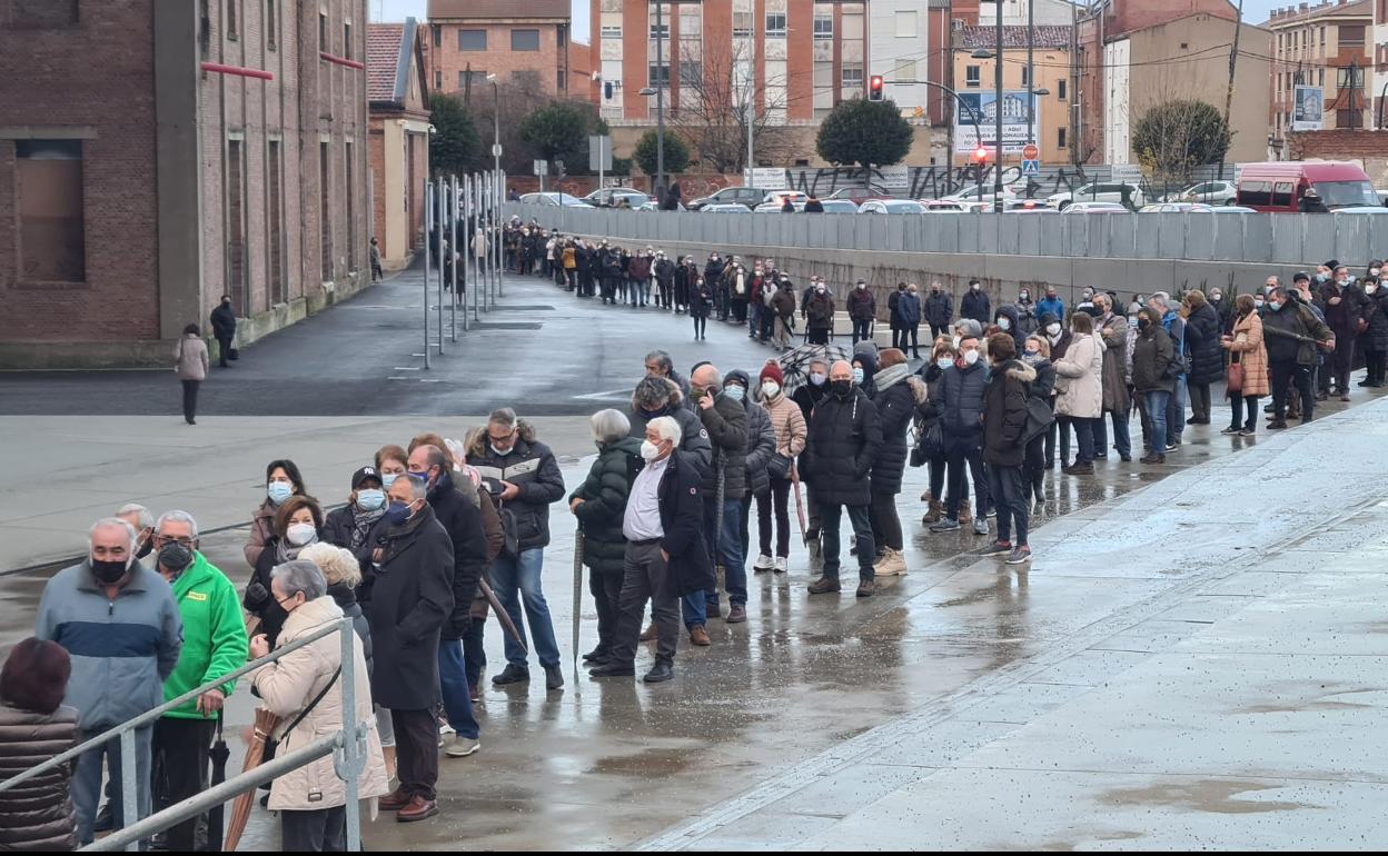 El Palacio de Exposiciones de León ha visto como desde minutos antes de la apertura de sus puertas como la cola ya giraba en torno a este equipamiento, que una vez más ha servido de trinchera contra la pandemia.
