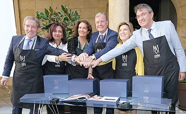 Los asistentes al acto de presentación se han enfundado un delantal negro como símbolo de comunión. Han brindado y han compartido su compromiso con ensalzar este manjar de reyes hasta la victoria, que se decidirá el 17 de octubre en la pugna entre la ciudad leonesa y Cuenca.