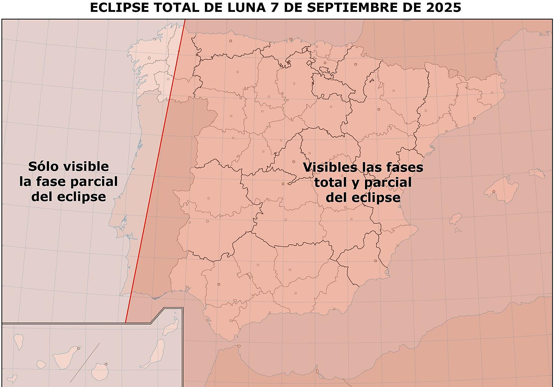 «Cuanto más al este mejor», afirma Pepe Gavilanes, «porque antes se hace de noche. Desde las Baleares se puede ver casi por completo», mientras que en el oeste de Galicia y Canarias sólo se verá de forma parcial. En León «se verá como que sale la Luna muy tenue y muy rojiza, como si fuera una puesta de Sol pero con la Luna. Para quien lo vea puede llegar a achacarlo a las condiciones meteorológicas y a las nubes».