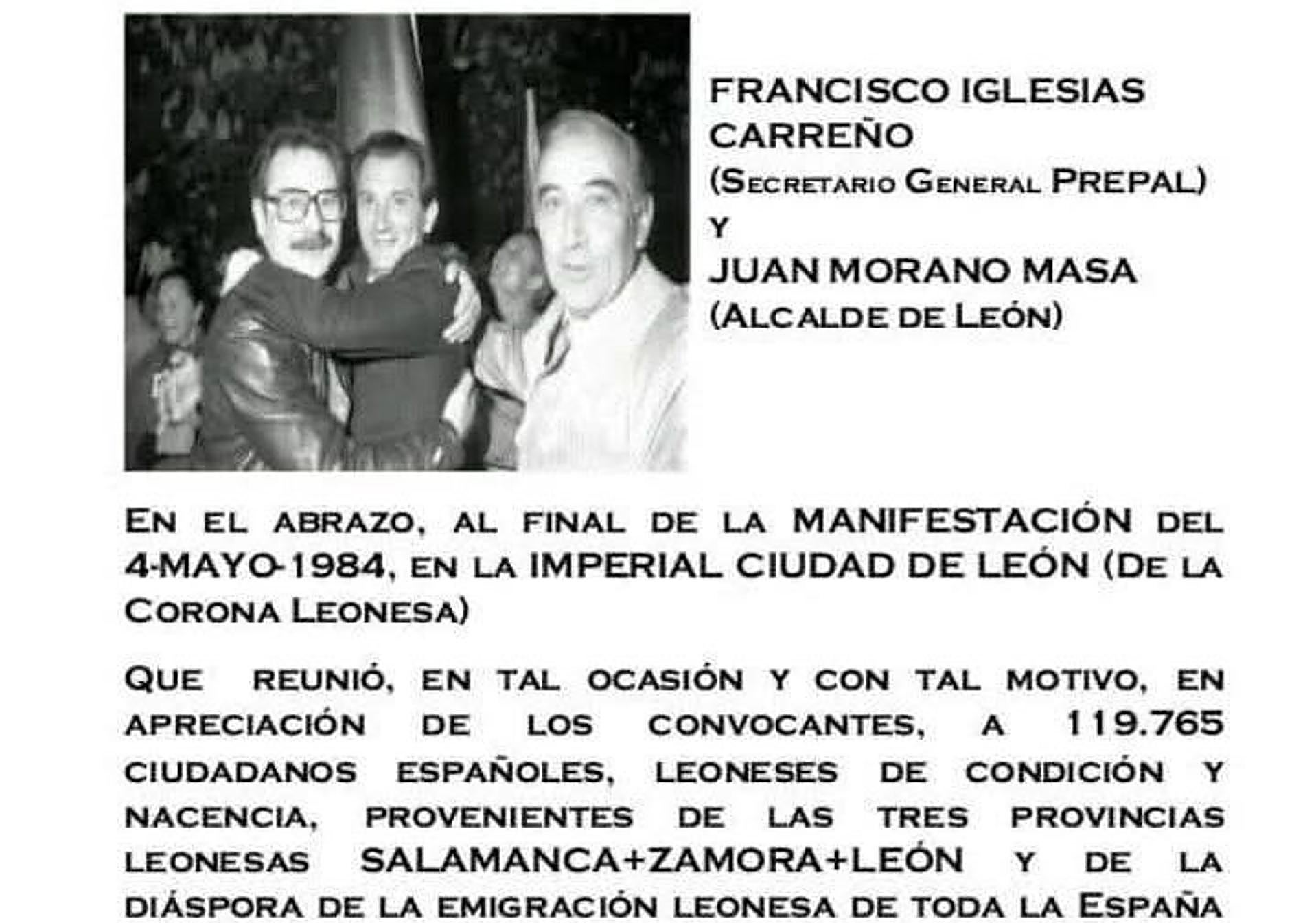 Entre los que la recuerdan Francisco Iglesias Carreño, presidente del Partido Regionalista del País Leonés que la tarde del sábado 3 de mayo de 2025 se volvía a citar con otros históricos como El Cheva en la plaza de Santo Domingo para recordar tan señalada fecha en el calendario.