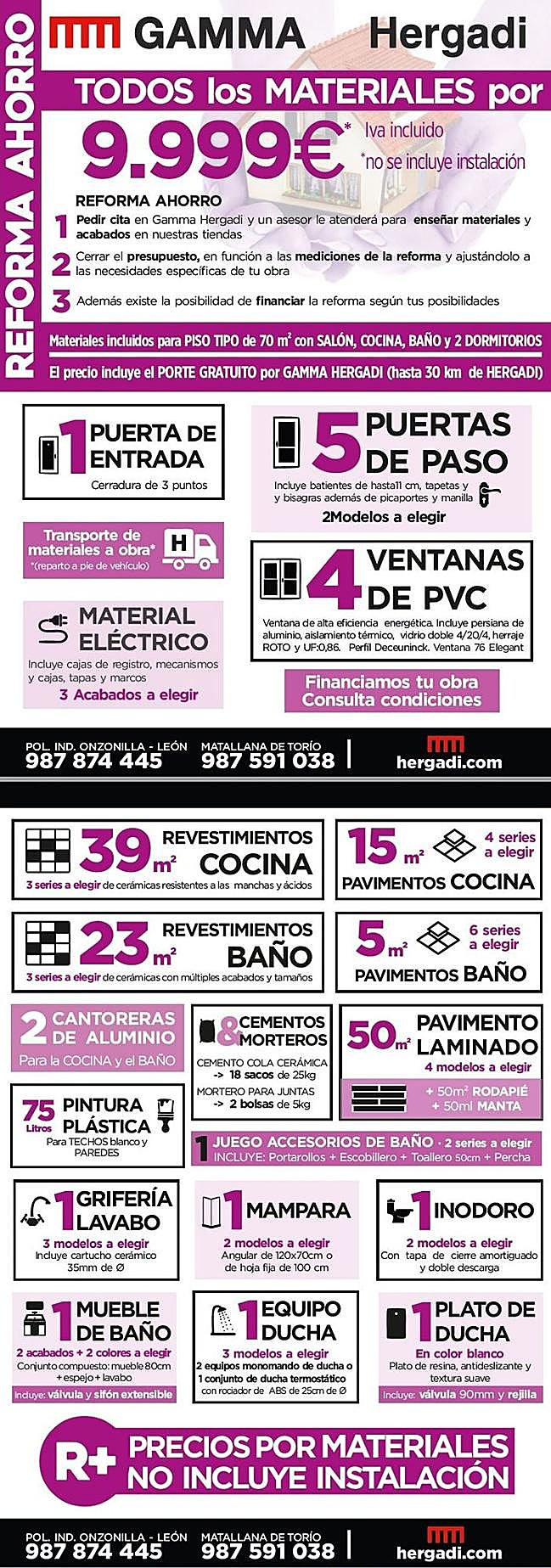 [Financiamos tu obra. Si quieres saber más sobre el Plan Reforma Ahorro infórmate en www.hergadi.com o visítanos en nuestras instalaciones en el Polígono de Onzonilla o en Matallana de Torío]