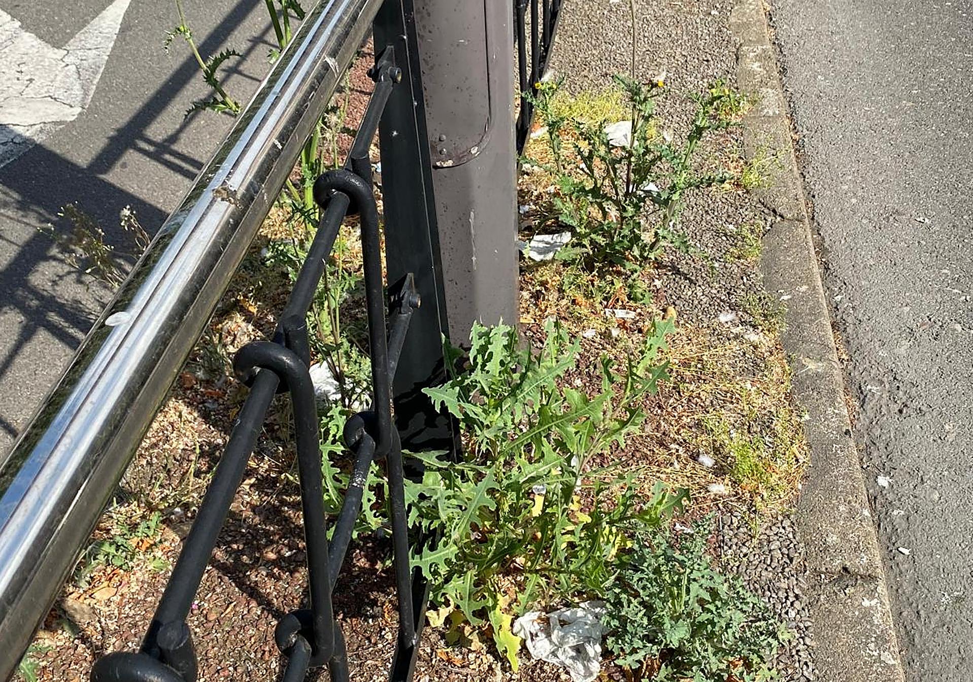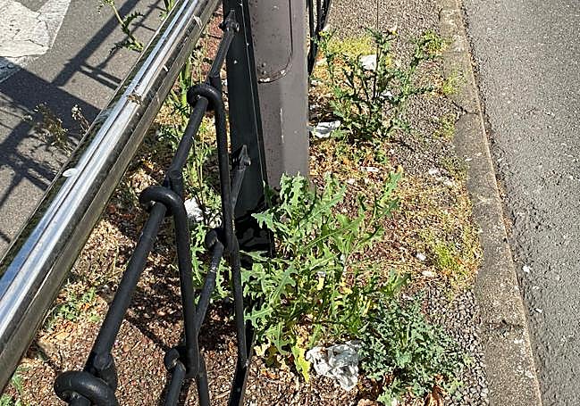 En esta ocasión, pone el foco en una avenida muy céntrica, el paseo de la Condesa, «donde la basura y la maleza se han adueñado de la medianera», con una imagen difícilmente explicable a escasos 100 metros del Parador de San Marcos, uno de los enclave más visitados por leoneses y visitantes, y en pleno Camino de Santiago.