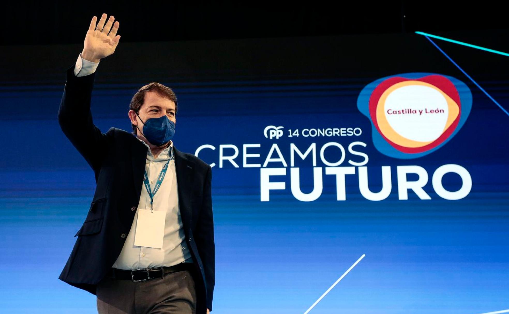 El líder de los populares obtiene la práctica unanimidad entre los 1.200 compromisarios y les anima ahora a «salir a por la victoria» para ganar las elecciones | «Yo no cedo, conmigo no hay chantajes que valgan. Si alguien quiere jugar a ser el Rufián de Castilla y León, que conmigo no cuenten para ser el Sánchez de Castilla y León»