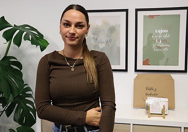 Laura González tiene su oficina en el vivero de empresas -edificio rojo- de Eras de Renueva. Desde allí gestiona los encargos de los clientes que conectan con ella para adquirir sus productos de márquetin y los objetos personalizados que comercializa. También es donde se conecta bajo el nombre 'Laudecor' a sus vídeos, un lugar donde se abrió a contar que desde los 17 años está diagnosticada de diabetes.