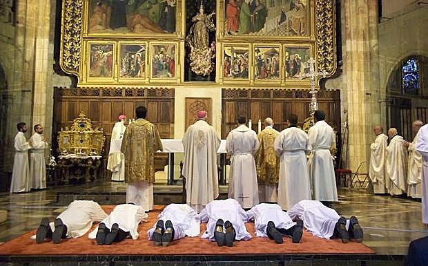 Durante dicho celebración, Julián López ha ordenado a un nuevo diácono y a cinco presbíteros en la Catedral