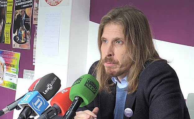El líder de Podemos en Castilla y León ha denunciado en rueda de prensa la gestión del Ayuntamiento leonés en referencia al alumbrado navideño.
