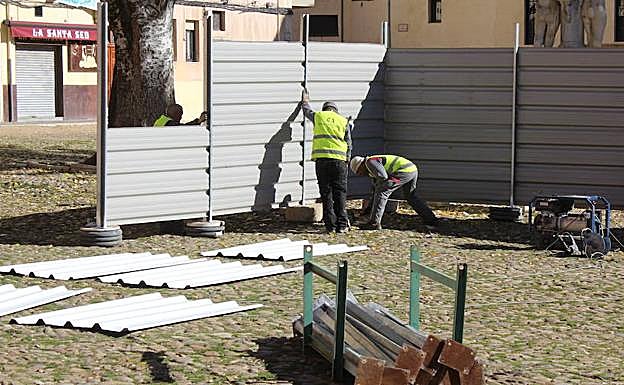 Los operarios han iniciado las labores de perimetración de esta zona de intervención que ocupará 49 metros cuadrados del centro de este emblemático entorno