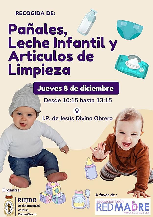 El próximo jueves 8 de diciembre la Real Hermandad de Jesús Divino Obrero realizará una recogida solidaria a favor de la Asociación Red Madre