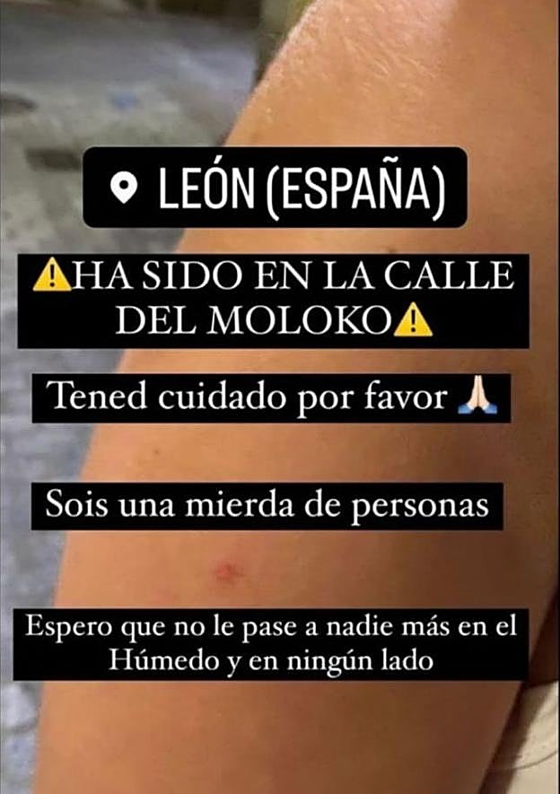 Un mensaje corto, conciso y acompañado por una imagen. La víctima denuncia a través de las redes que ha sido pinchada en una de las calles más transitadas en la noche leonesa, la calle de la Paloma.