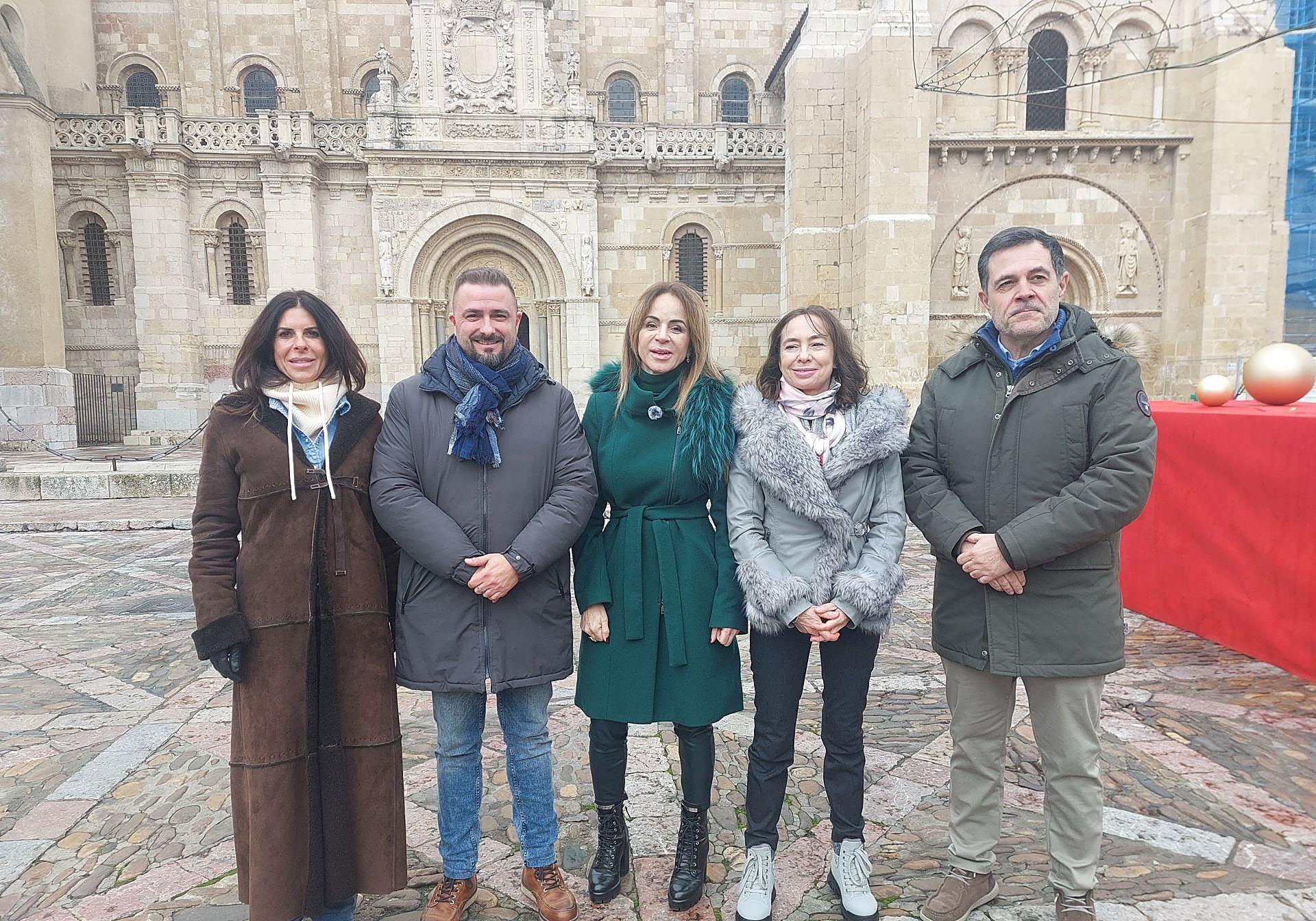 A los pies de San Isidoro y arropada por parte de su equipo, Clemente acompañaba este viernes a Mario Valladares, quien será su hombre por la provincia de León en la carrera electoral. Un «magnífico leonés» que, como el resto de su equipo, «siente auténtica pasión por su provincia».