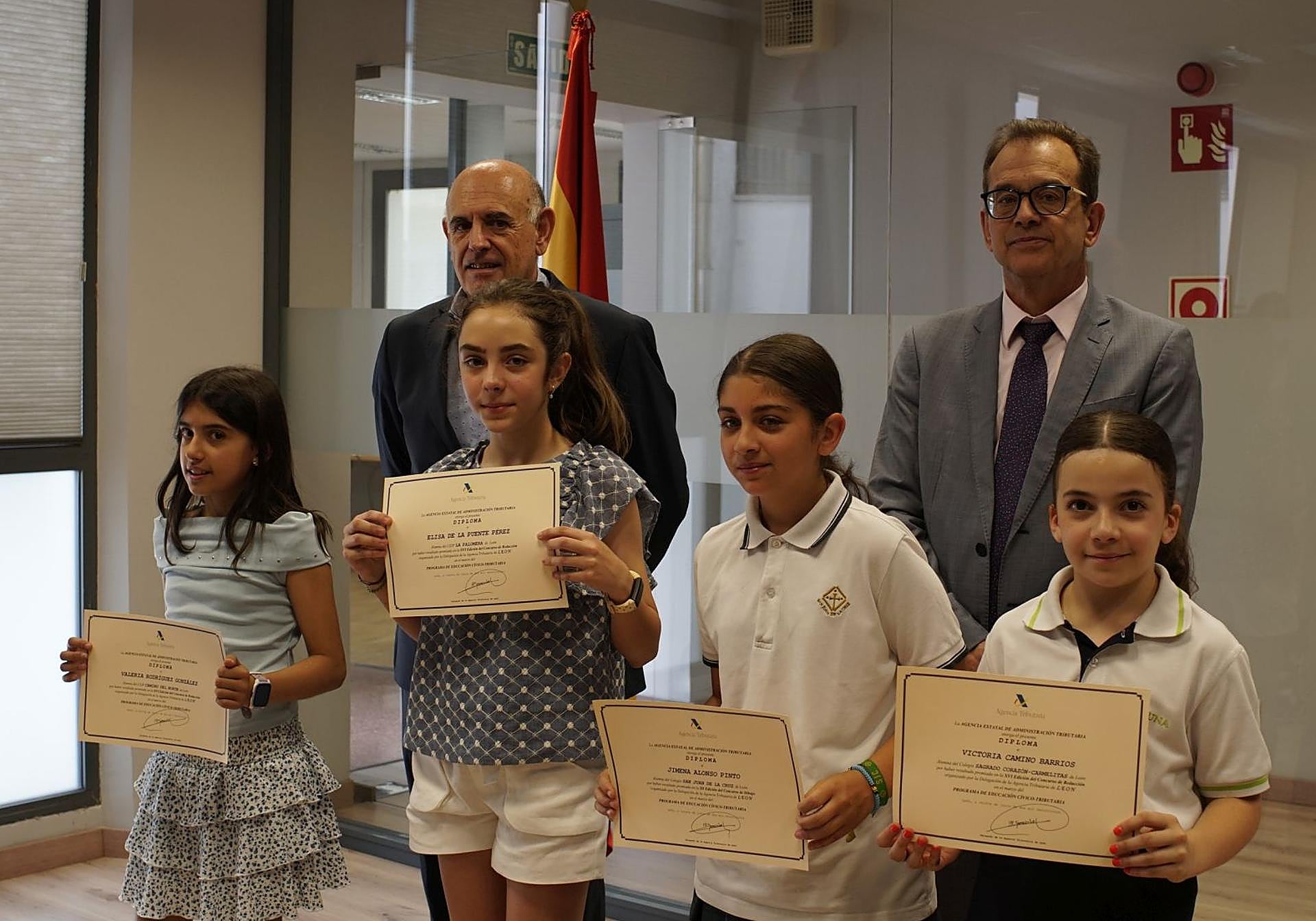 Victoria Camino Barrios, Elisa de la Puente Pérez, Valeria Rodríguez González, Jimena Alonso Pinto, Izan Alonso Da Silva y Noak López Teixeira son los escolares ganadores del concurso para centros escolares 2024-25 que organiza la Agencia Tributaria en la Delegación de León.