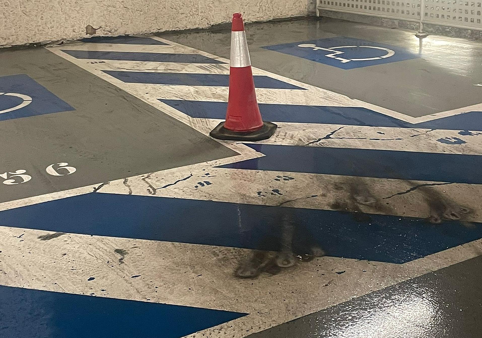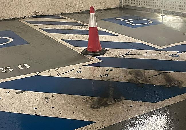 Usuarios del parking subterráneo han registrado las humedades y goteras que han vuelto a salir en la zona donde tienen reservadas plazas para aparcar sus coches.