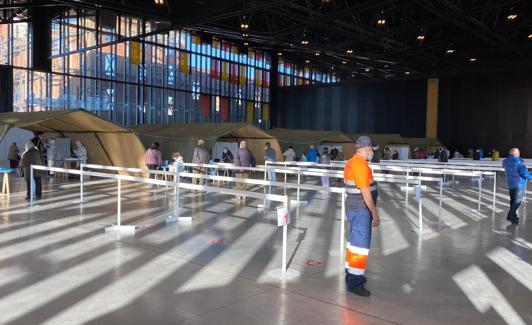 Un nuevo paso en la lucha contra la covid-19 en León. La zona básica de Eras de Renueva, la que más positivos acumula en las últimas semanas, se vuelca con el cribado masivo de test de antígenos en el Palacio de Exposiciones de la capital.