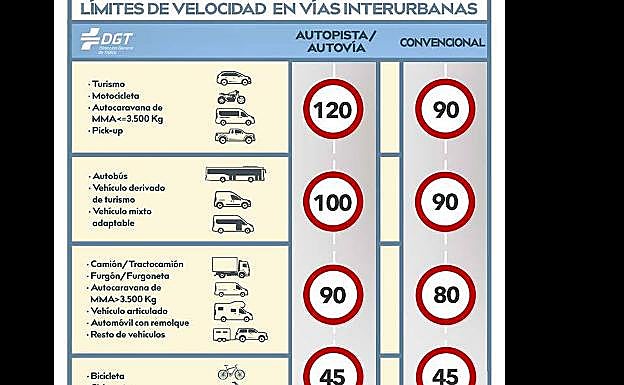 Los turismos, motos, autocaravanas (con igual o inferior a 3.500 kg de mma) y Pick Up tienenactualmente un límite de velocidad genérica máxima de 90 km/h en carretera convencional. Aunque el titular de la vía podrá establecer un límite de hasta 100 km/h (excepto para los pick-up). En autopistas y autovías, el límite para todos ellos es el de 120 km/h, según informa la DGT.