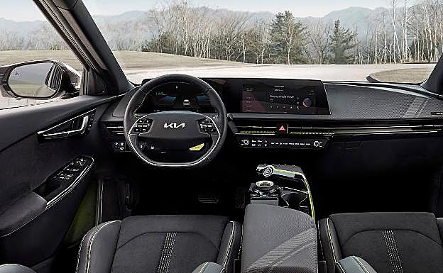 El sistema de infoentretenimiento de alta tecnología incluye pantallas dobles de 12 pulgadas (30 cm). Para limitar el efecto de la luz, las pantallas curvas del EV6 tienen paneles de película fina con una nueva estructura y una tecnología avanzada. La instrumentación y el sistema de infoentretenimiento están conectados como si estuvieran cubiertos con un cristal reforzado. Se extiende desde el volante hasta el centro, de forma que muestra los instrumentos digitales frente al conductor y el sistema de infoentretenimiento por encima de la consola central.
