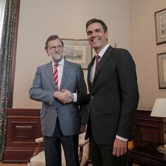Mariano Rajoy y Pedro Sánchez al comienzo de la reunión.