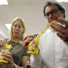 Su comparecencia ante los medios ha tenido un broma incluida: se han hecho fotos con dos bolsas de M&M's que han repartido a los periodistas, y han elegido esta marca porque en las dos 'm' ven reflejados la pareja que forman: Mas y Munté.