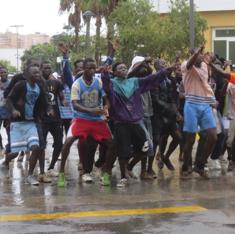 Los inmigrantes subsaharianos han ido corriendo en grupo hasta el Centro de Estancia Temporal de Inmigrantes (CETI) bajo la lluvia y allí han sido recibidos con gritos de satisfacción por el resto de acogidos en este centro dependiente del Ministerio de Empleo y Seguridad Social, donde serán acogidos igualmente.