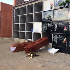 Los dos ataúdes sacados de sus nichos en el cementerio de Liria.
