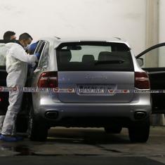 Especialistas examinan el vehículo donde ha sido hallado el cadáver.