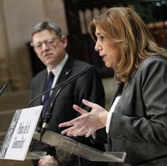 Susana Díaz está este domingo en Valencia para asistir junto al 'president' a la celebración del Acto Institucional del Día de Andalucía organizado por la Federación de Entidades Culturales Andaluzas en la Comunidad Valenciana (FECACV). Además, ambos mantendrán después un encuentro con alcaldes socialistas de la Comunitat Valenciana. "Ya lo he dicho con claridad estos días, estoy en la celebración del Día de Andalucía y por respeto a mi tierra y a los ciudadanos de Andalucía no me voy a distraer en hablar ni de mí ni de nada que no sea la celebración del Día de Andalucía", ha dicho.