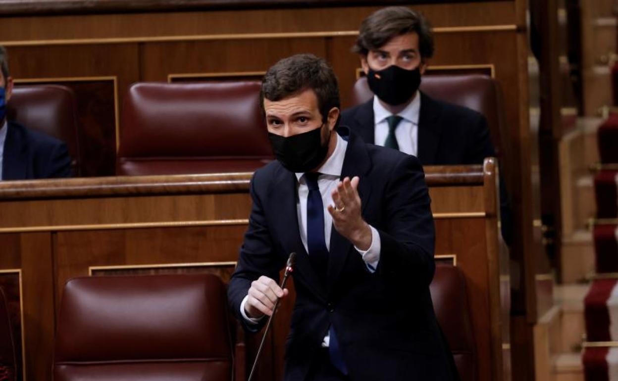 El Gobierno encargó un informe al Consejo de Estado sobre el decreto que regula la gestión de los fondos europeos y después, como era crítico con el método de reparto ideado por la Moncloa, decidió ocultarlo. Esta es, en síntesis, la acusación que el PP lanzó este miércoles en el Congreso durante la primera sesión de control del año a la que se unió Ciudadanos. Los populares aseguran que el Ejecutivo ha «arrancado» páginas de un documento cuyo contenido, dicen, es «demoledor» y que podría llegar a tumbar el decreto que la semana pasada salvó 'in extremis' Vox con su abstención. «Es la primera vez que se hace eso y es un escándalo que puede anular el decreto y debilita nuestra credibilidad internacional», advirtió Pablo Casado.