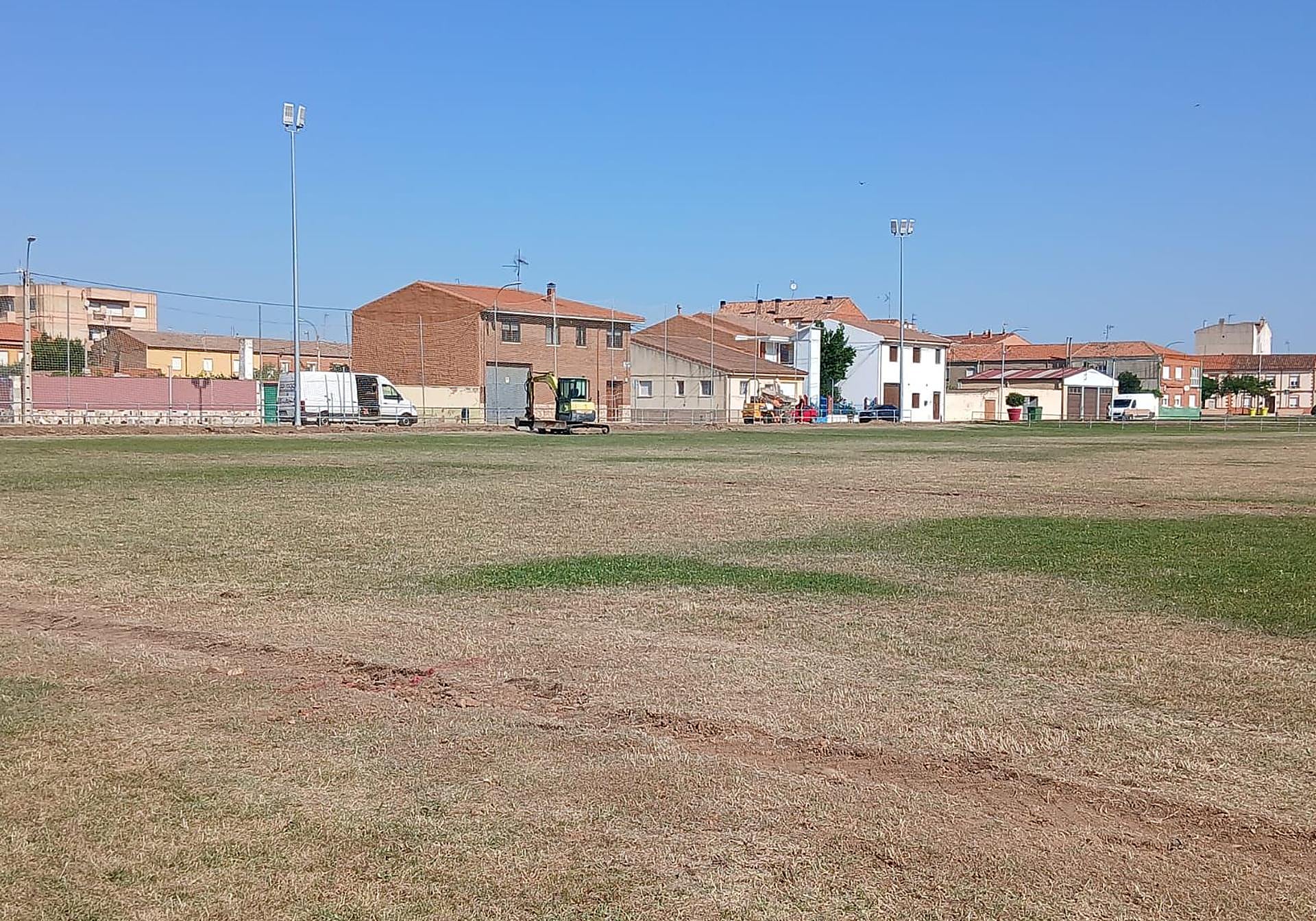 Las obras de implantación de la red de riego en el campo de fútbol del Prado de Abajo en Santa María del Páramo ya se encuentran en su última fase y se prevé que terminen en los próximos días.