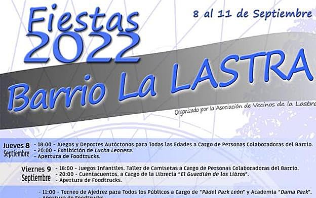 El Barrio de La Lastra tendrá del 8 al 11 de septiembre sus fiestas, organizadas por la Asociación de Vecinos y con juegos, deportes, food trucks, torneos y actividades infantiles programadas.