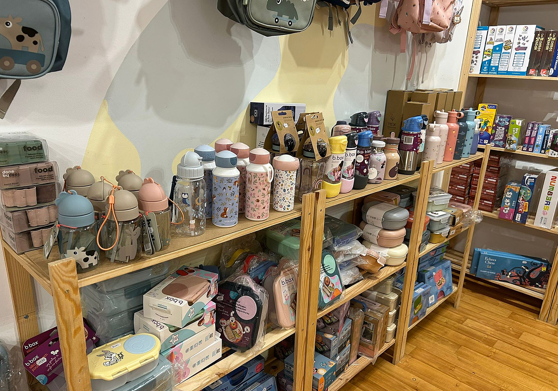 Roberto y Estefanía, dueños de la tienda, trabajan con las mejores marcas. Juguetes de Plan Toys, Dena, Little Dutch o Lilliputiens están presentes en unas estanterías en donde la variedad es la tónica dominante. Cajas de almuerzo, botellas de acero o bolsas con estampados completan la oferta de una empresa comprometida con la salud de los más pequeños. En El Mundo en tus Manos siempre se trabaja con materiales libres de productos tóxicos o que puedan suponer un peligro para los niños.