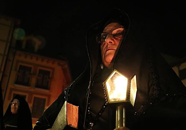 Las capas de los acompañantes de San Pedro del Castro, así como miembros de la Orden del Santo Sepulcro seguían de cerca el avance de esta talla, que contó con la liturgia de la vela de las mujeres ataviadas con riguroso luto leonés y preparadas para rezar a cada una de las llagas.