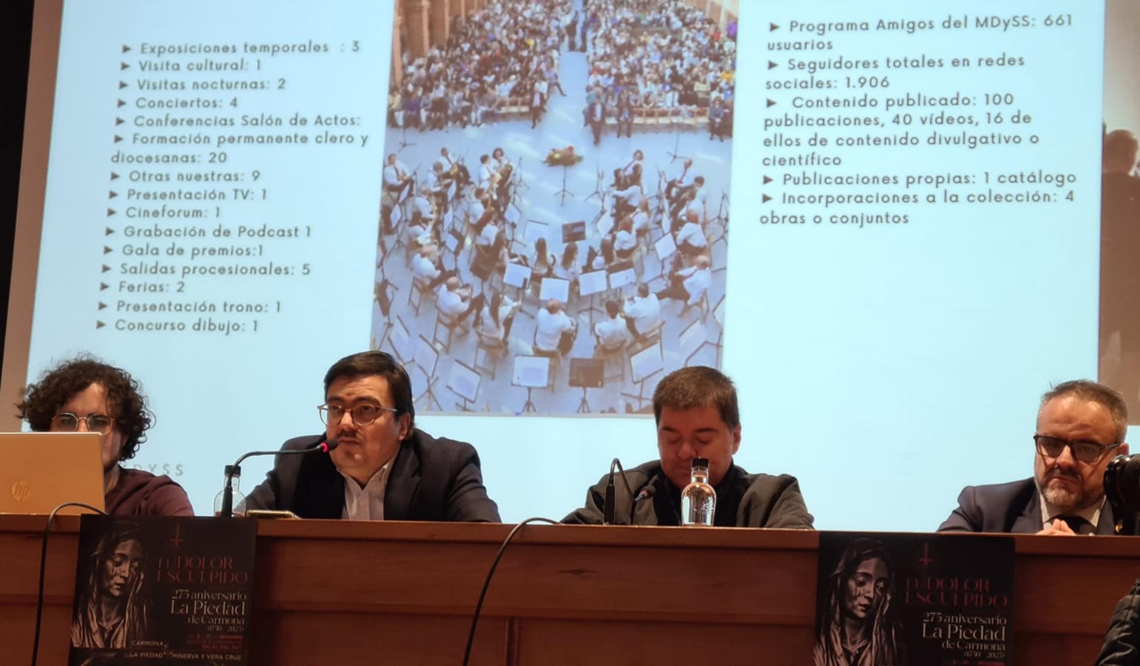 Minerva ha querido celebrar este 275 de la talla con la exposición ' El dolor esculpido: Carmona, la Piedad y Minerva'. «Han sido meses de trabajo con parroquias, basándonos en el libro de las piedades de Máximo Rascón, para dar como resultado la vuelta de Minerva a Palat», una iglesia que fue sede de la sacramental desde el año 1963, cedida por el obispo Almarcha, y que tiene «mucho significado» para ellos.