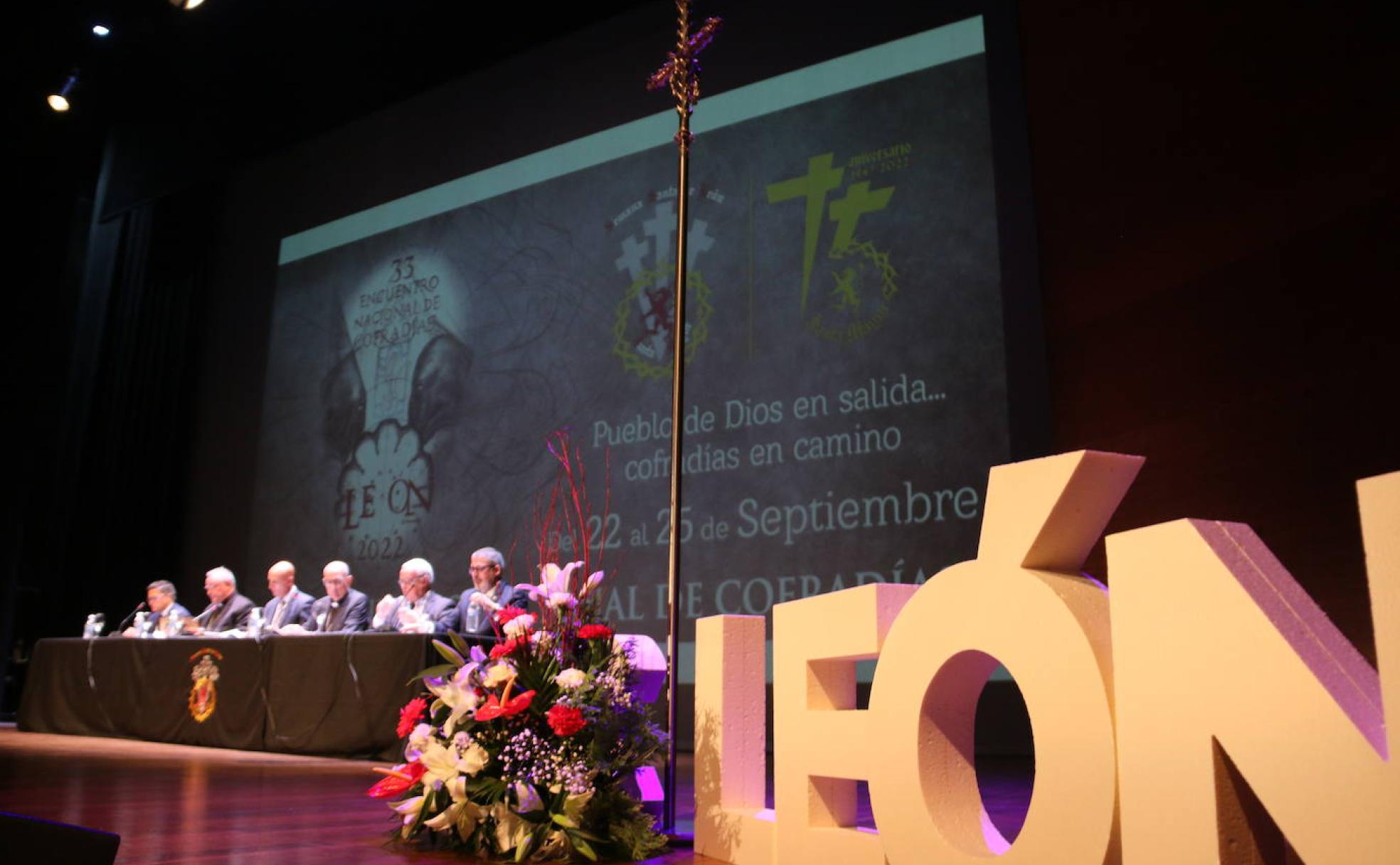 El Auditorio Ciudad de León se ha convertido este viernes en un espacio para exaltar la Semana Santa, para unir a cofrades llegados desde todos los puntos de España y ensalzar una muestra de cultura y religión que la ciudad lleva «muy arraigada al corazón».