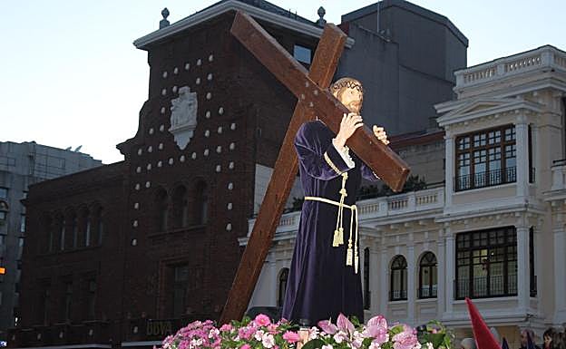 El Crucificado de los Padres Capuchinos, al son de las marchas de la Agrupación Musical de La Cena, encaró con solemnindad y recogimiento las calles del centro de la capital leonesa, pasando por el barrio Romántico, Santa Marina y la calle Ancha.