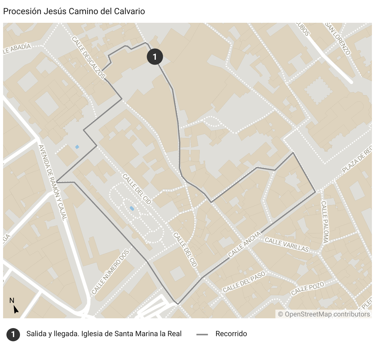 Lugar y hora de salida: Iglesia de Santa Marina la Real, a las 20:00 horas