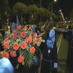 Tras los faroles y la cruz de guía, que de nuevo han abierto la marcha, han seguido el guion o emblema de la Cofradía, la Cruz alzada y la Cruz de difuntos, de fuerte contenido simbólico, ya que en su centro una placa, que se coloca en la cruz tras su lectura previa al comienzo de cada procesión, recuerda a los hermanos difuntos.
