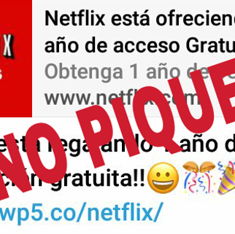 ¿Un año de suscripción gratuita a Netflix? ¿En serio? ¿Vaya chollo, no? Como no podría ser de otra manera es otro bulo más de los que circulan, en esta ocasión, por Whatsapp. Por mucho que reenvíes el mensaje a tus contactos no conseguirá nada: salvo que roben tus datos. La policía avisa a través de las redes sociales (tanto Facebook como Twitter)