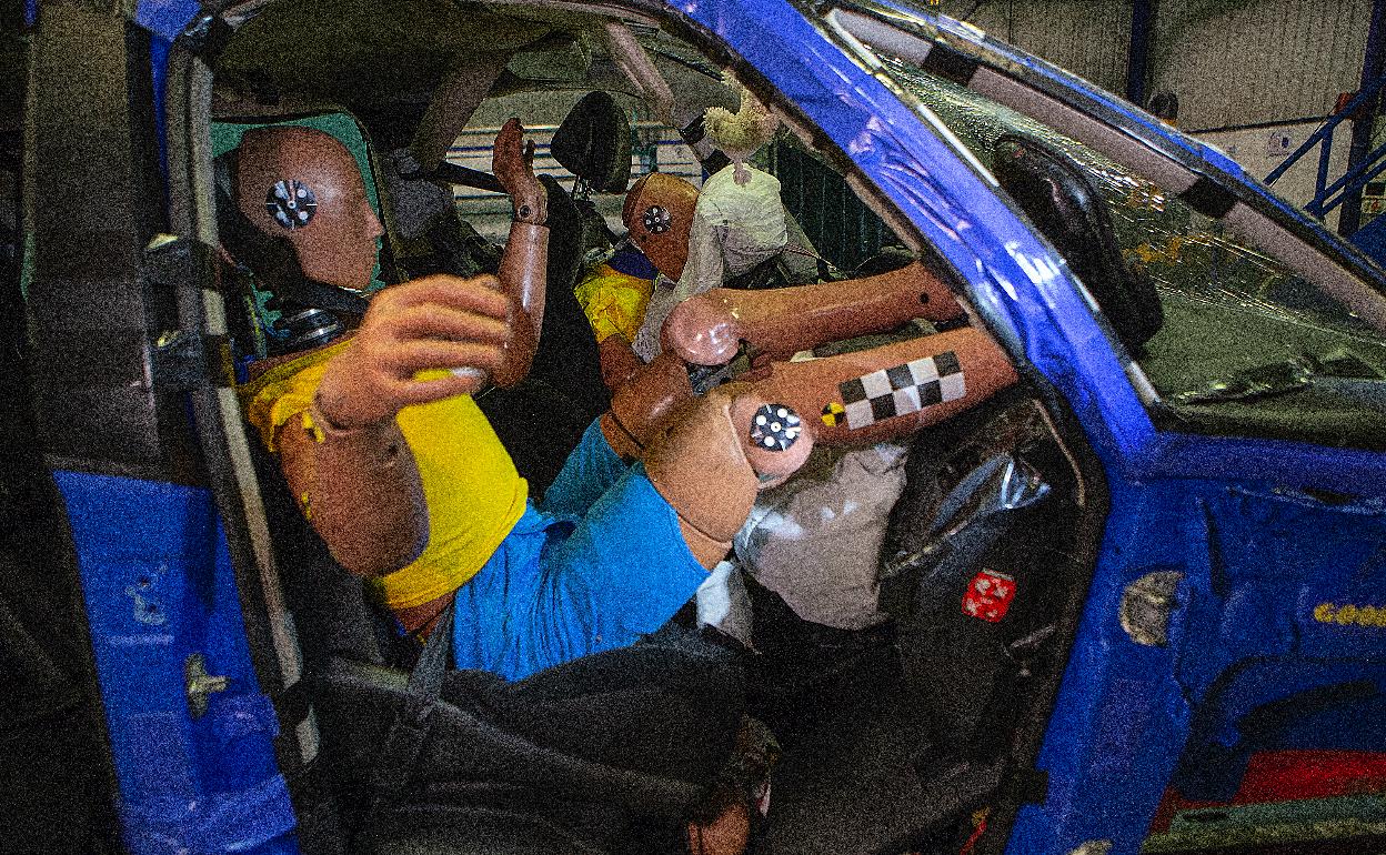 Vista de un impacto frontal a 56 km/h y las consecuencias que sufren los pasajeros. Foto y vídeo: Virginia Carrasco