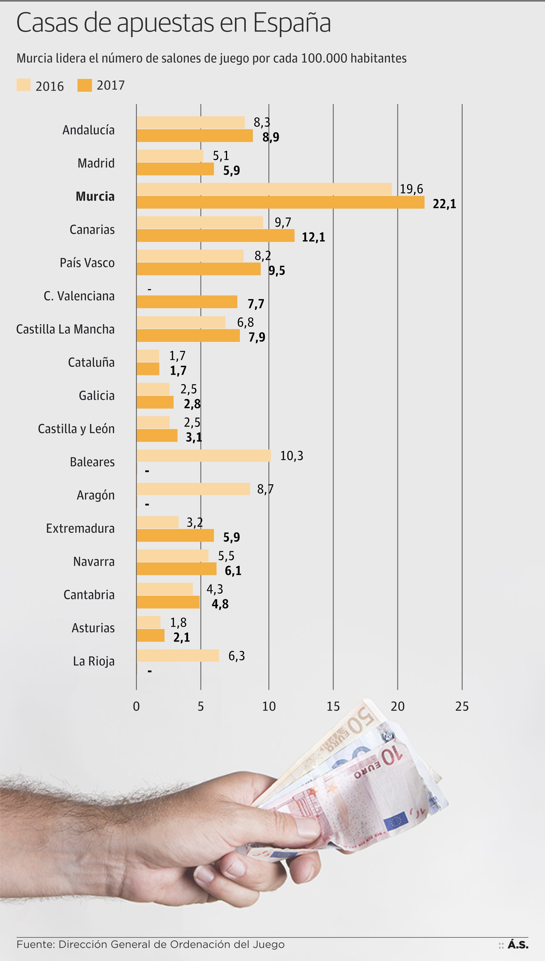 En todas las ciudades españolas se repite el mismo mantra, cuando la renta per cápita del barrio baja de los 25.000 euros al año, se dispara el número de locales de apuestas.