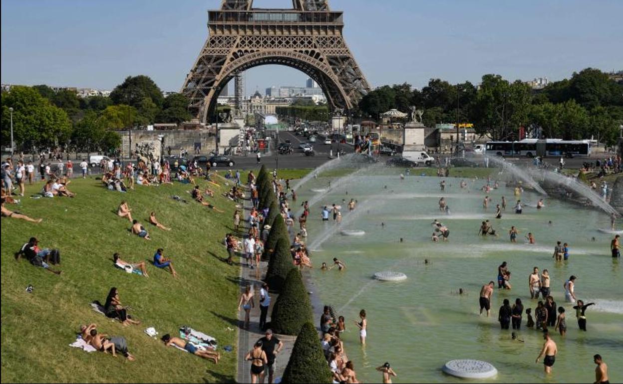 Francia ha registrado este martes su récord histórico de temperatura, alcanzando los 41,2ºC, según ha señalado el servicio meteorológico francés Météo-France. Las fuentes de la ciudad parisina se han convertido en las mejores alternativas entre los habitantes para sofocar las altas temperaturas, aunque también han resultado de gran ayuda las salas con aire acondicionado que ha abierto la alcaldía en los edificios públicos. La entidad ha ordenado además la apertura de parque y jardines en horario nocturno.